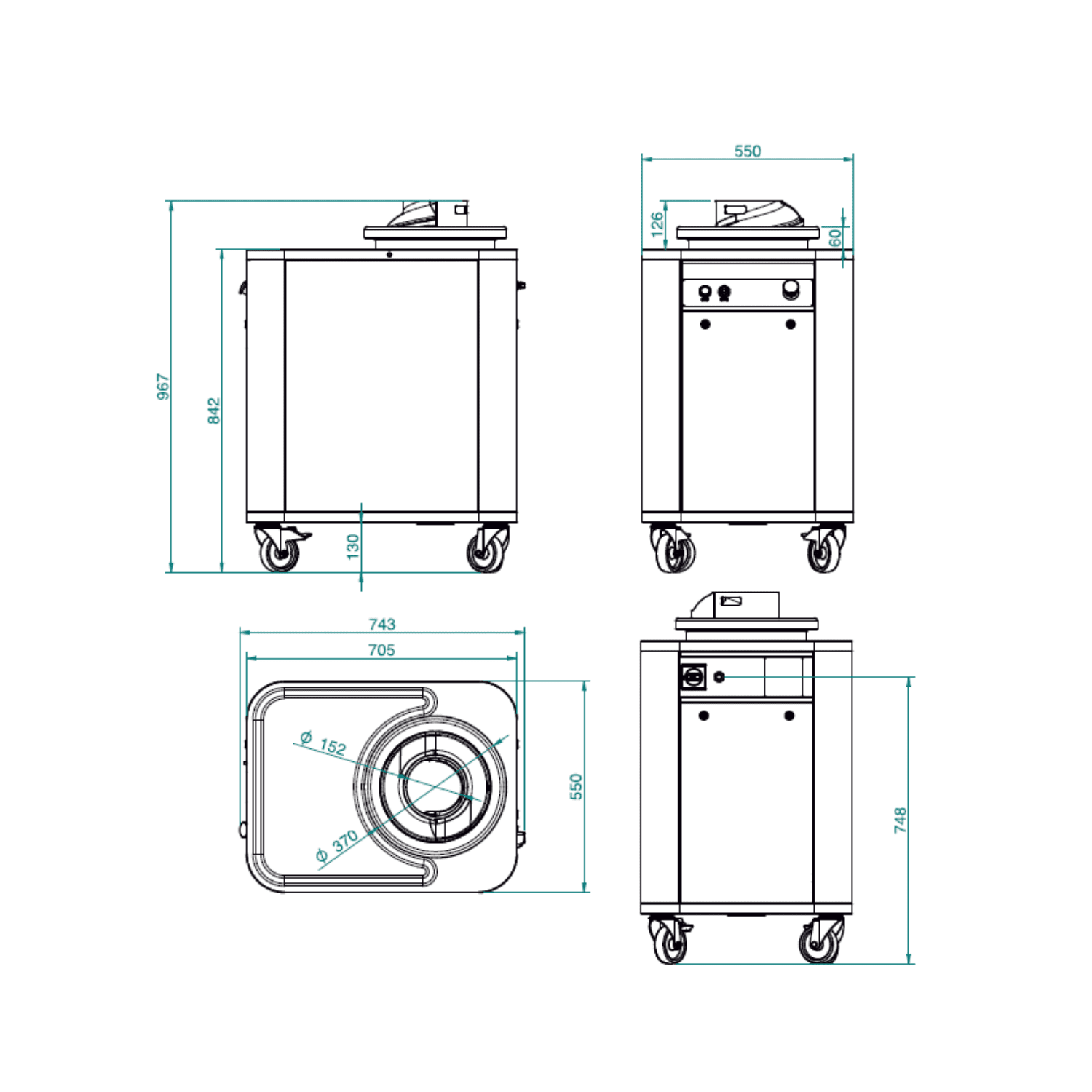 ניתן לכוון את יציאת הבצק לארבעה כיוונים שונים, בהתאם למיקום המכונות במפעל ולמערכות המסועים המחוברות
