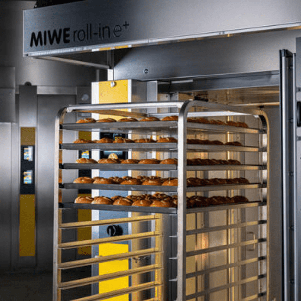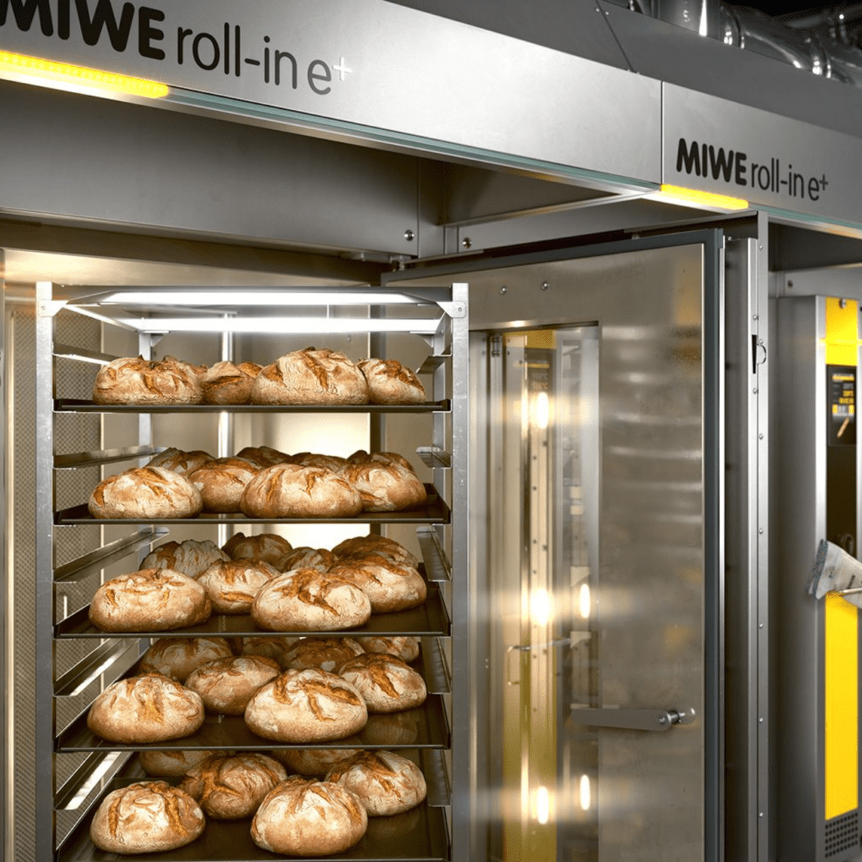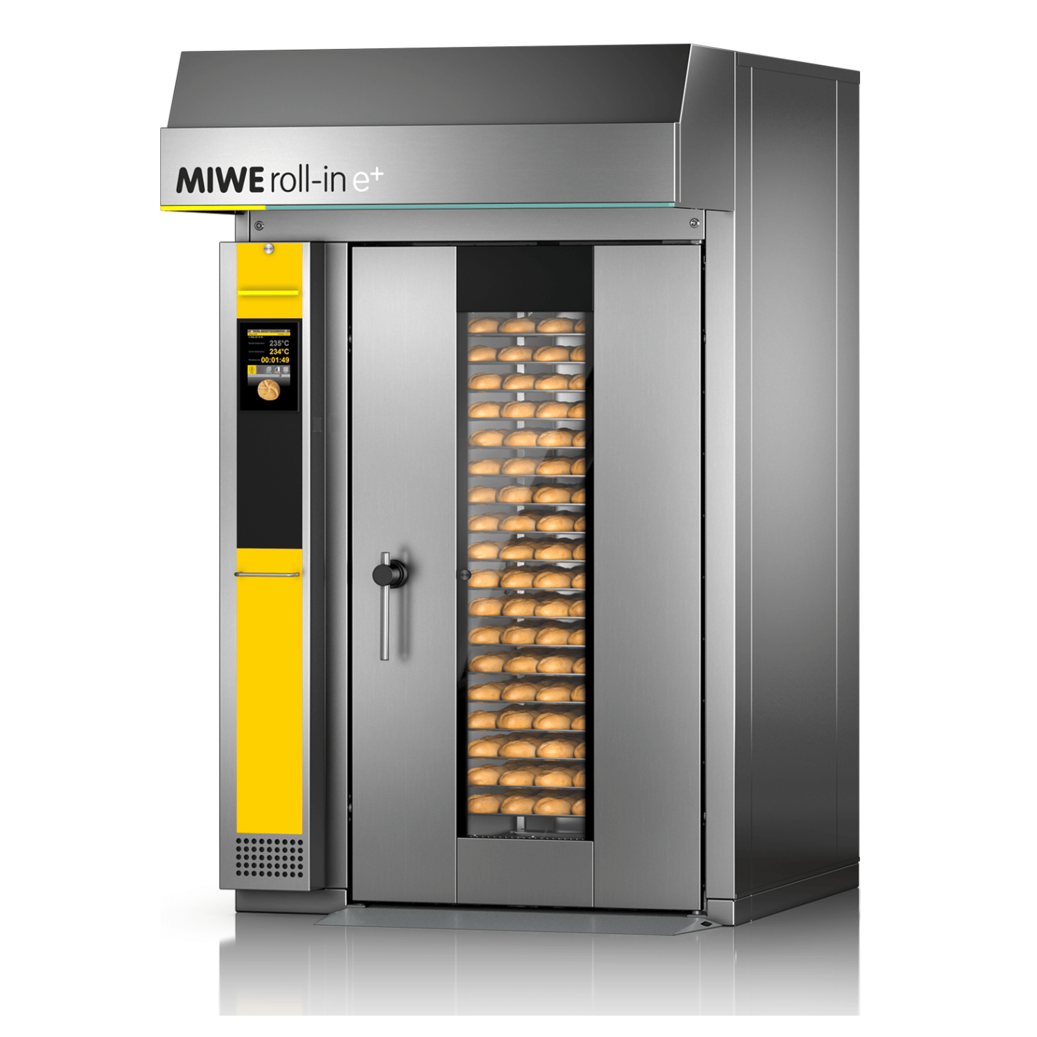 תנורי רול אין ROLL-IN מתוצרת Miwe- הנם תנורי עגלה מסתובבת בעיצוב חדשני ומאופינים במערכת בקרת אוויר ייחודית המאפשרת שליטה על כמות האויר המסוחרר המוזרם למוצרים הנאפים.